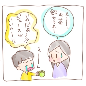 「やだー!ジュース飲むー!」と言って泣いてしまいます。。。